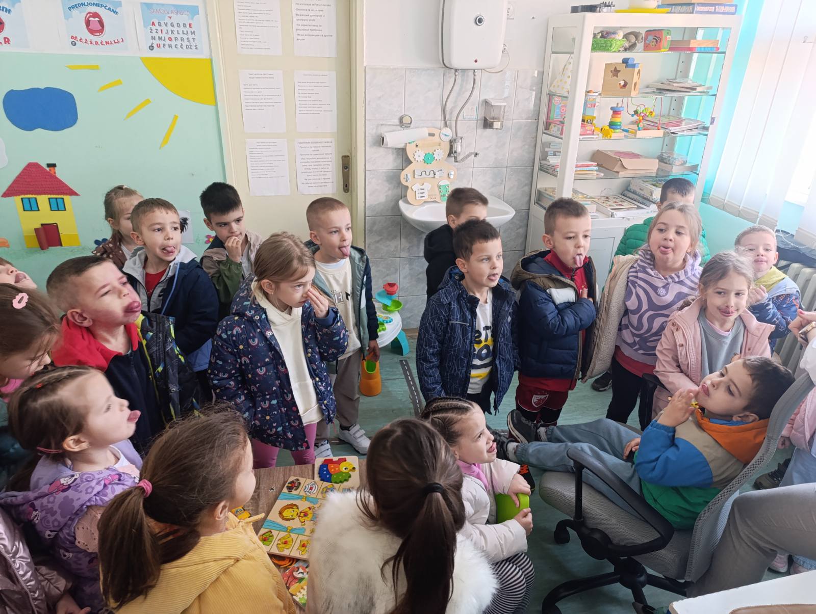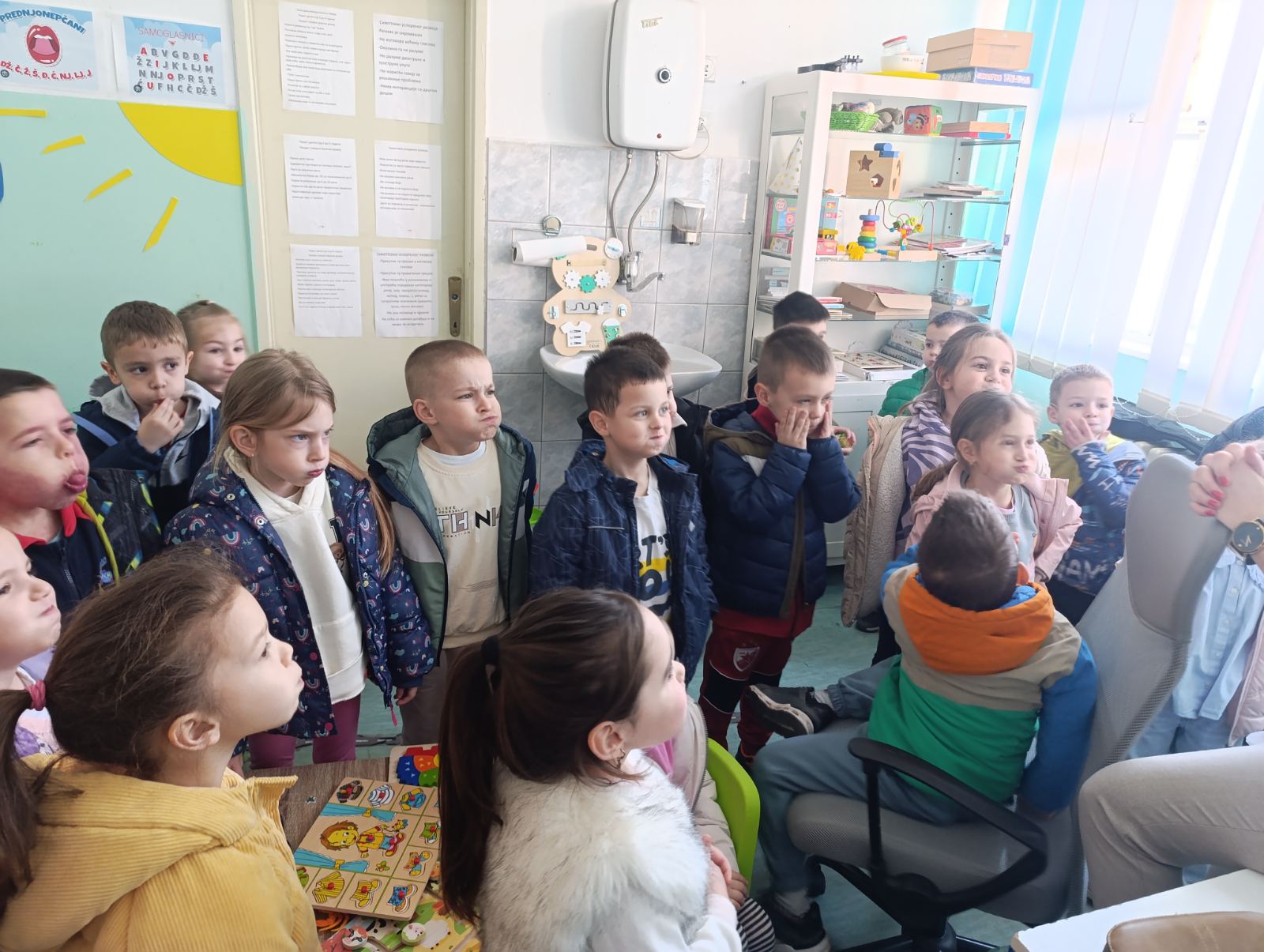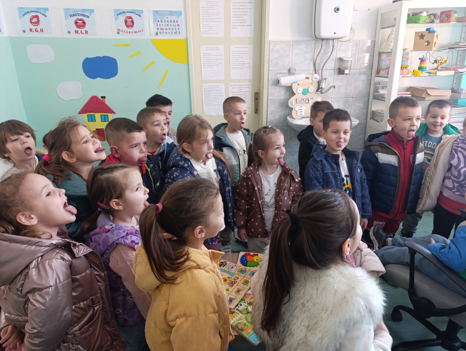 Поводом Дана логопеда 06. марта 2026. године деца старије васпитне групе “Медведићи” са васпитачицама Вером и Марином посетила су логопедску канцеларију родитељке Маје и том приликом се упознали са послом логопеда и реквизитима које користи у свом раду.